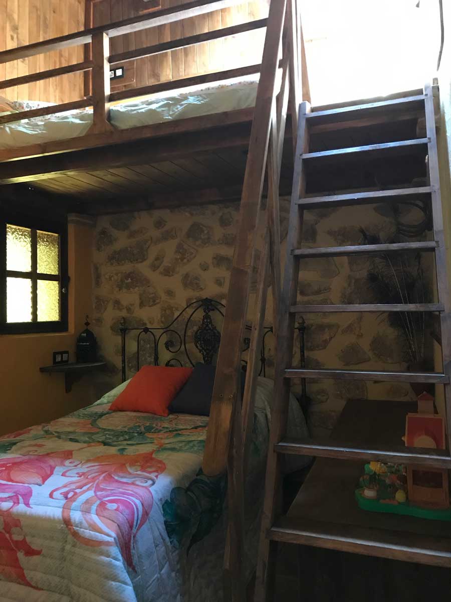 En la planta superior, disfrutarás de un pequeño salón ideal para charlas o lectura, y de 3 habitaciones: dos con cama doble y una con dos camas individuales, una de ellas en un altillo tipo litera, perfecta para los más pequeños. Un espacio pensado para ofrecer el máximo confort a toda la familia o pequeños grupos.